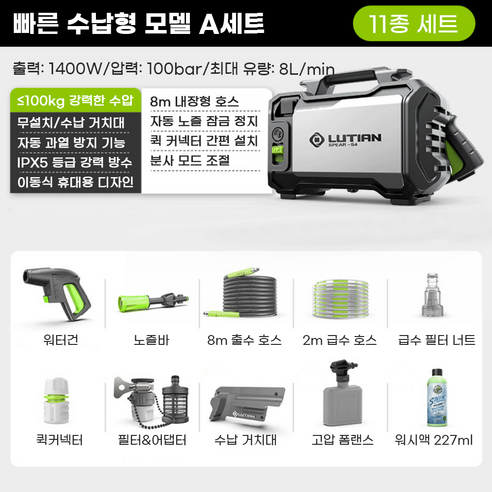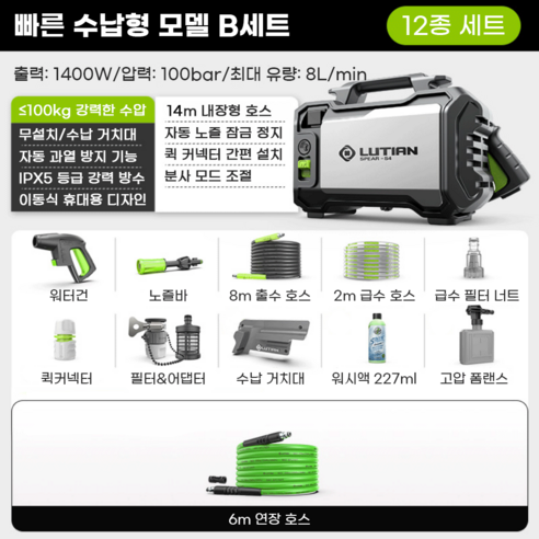 실제로 사용해 보니, 처음엔 물의 압력에 대한 의구심이 들었는데, 곧바로 그 우려가 사라졌어요. 1400W의 강력한 모터 덕에 물줄기가 정말 강력해요. 세차하는 내내 '어? 이건 정말 안 되는 게 없겠는데?'란 생각이 들 정도였죠. 후방에 있는 경미한 스크래치도 금방 사라지더라고요. 세차 후 차량이 반짝 거려서 기분이 정말 좋았답니다!