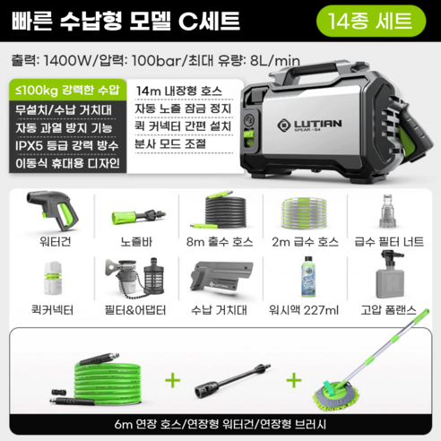 하이드로클린 강력한 고압세척기 고압세차기 고압세차건 초강력 분사기 가정용 1400W 고출력 세